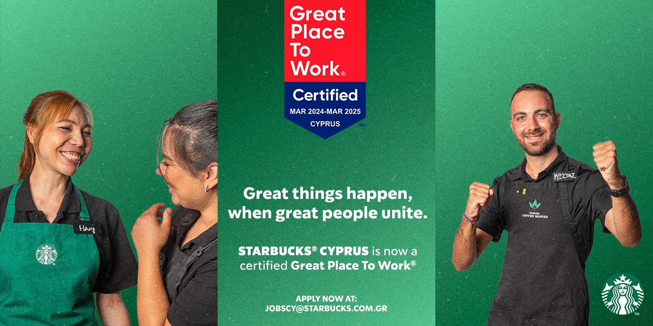Τα Starbucks λειτουργούν στην Κύπρο από το 2003 όπου αγκαλιάστηκαν ευρύτερα από το κοινό και σήμερα αποτελούν σημείο αναφοράς για όλους τους λάτρεις του καφέ. Με τον κύριο Ιωάννη Παπαθεοχάρους, District Manager στα Starbucks, συζητήσαμε σε μια συνέντευξη εφ΄ όλης της ύλης, για την εργασιακή κουλτούρα, την εκπαίδευση, τις ευκαιρίες ανέλιξης των εργαζομένων στα Starbucks και πολλά άλλα.